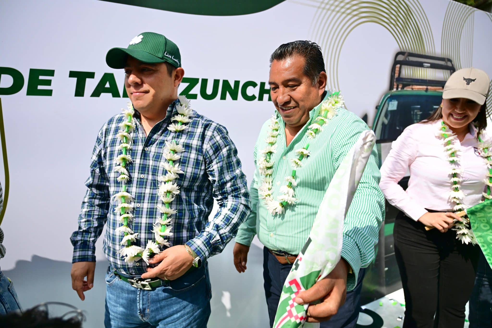 En un acto efectuado en el entronque del camino Retroceso Guaxcuaco de este municipio y acompañado del alcalde Adelaido Cabañas, quien agradeció el apoyo, el Mandatario Estatal entregó el paquete de camionetas, que propiciará una mejor vigilancia y desplazamiento por la red de caminos de esa demarcación, además de dignificar la labor de las y los elementos de la policía municipal.