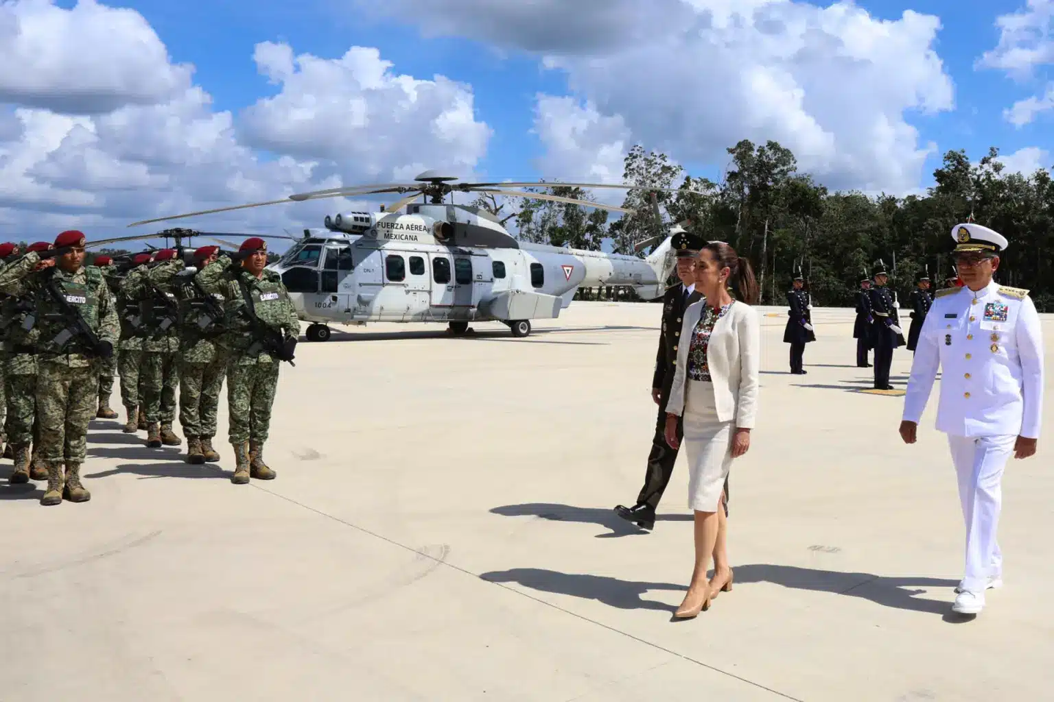 La Fuerza Aérea Mexicana (FAM) conmemoró su aniversario 110 con una ceremonia encabezada por la presidenta de México, Claudia Sheinbaum, quien además inauguró la Base Aérea Militar número 20 en Tulum, Quintana Roo.
