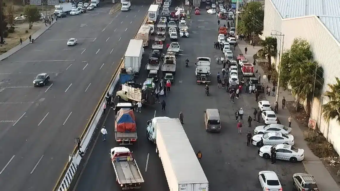 Transportistas bloquearon los carriles centrales.