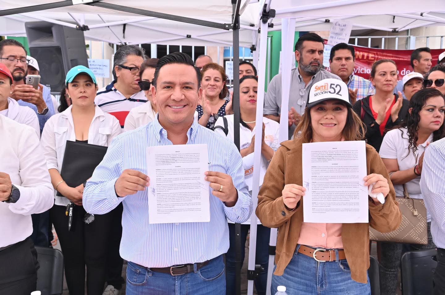 Entre los acuerdos destaca el nombramiento de un enlace de la Secretaría de Finanzas para atender y agilizar directamente los temas administrativos de los agremiados, así como la instalación, a partir del 1 de julio, de reuniones de alto nivel entre la Secretaría General de Gobierno, la Secretaría de Educación y la Sección 52, para el seguimiento puntual de compromisos y construcción de soluciones sostenibles.