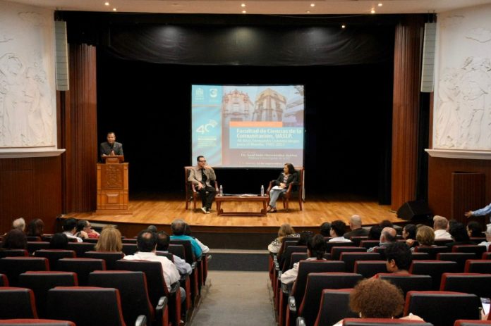Este 12 de septiembre, en el marco de la celebración de los 40 años de historia de la Facultad de Ciencias de la Comunicación de la Universidad Autónoma de San Luis Potosí (UASLP), se llevó a cabo la presentación del libro “Facultad de Ciencias de la Comunicación UASLP, 40 años formando comunicólogos para el mundo 1985-2025”, obra del doctor Saúl Iván Hernández Juárez, profesor investigador de la institución.