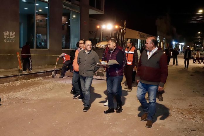 El Alcalde Enrique Galindo Ceballos realizó este jueves una supervisión nocturna de los trabajos de regeneración integral en la calle Julián de los Reyes, en el corazón del Centro Histórico de San Luis Potosí, acompañado del Director de Obras Públicas, Eustorgio Chávez Garza y del Director de Comercio Municipal, Ángel de la Vega Pineda. Durante el recorrido, el Presidente Municipal destacó que esta obra representa una inversión clave para fortalecer el comercio tradicional de la zona, con el compromiso de que esté lista para la temporada decembrina.