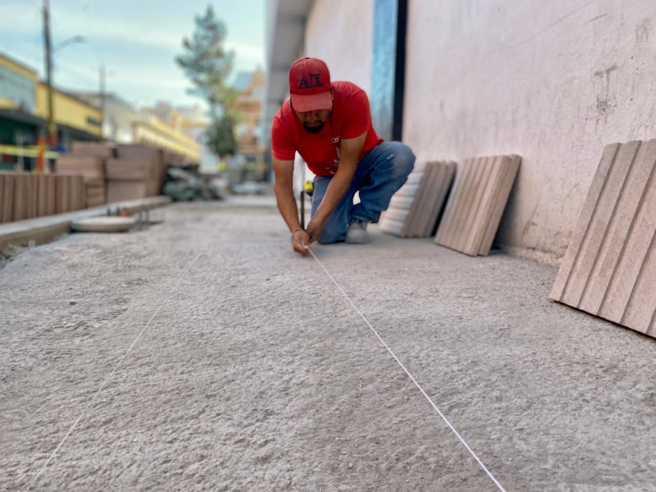Actualmente, en el tramo que va de Pasaje Hidalgo a Damián Carmona, cuadrillas especializadas trabajan en la construcción de nuevas banquetas con losetas de cantera de 40 x 40 centímetros, un proceso artesanal que se ejecuta pieza por pieza para garantizar alineación, nivelación y una apariencia uniforme acorde al entorno histórico. En total, se instalarán 5 mil 489 losetas, con mano de obra cuidadosa que respeta las normas de protección en áreas protegidas.